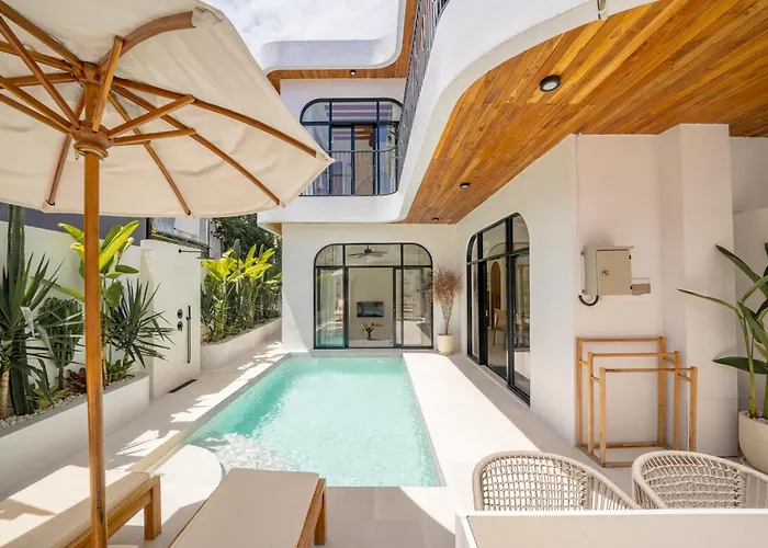 During the stay at Villa Arco Pererenan, guests can indulge in a plunge pool or visit Merah Putih Indonesian Restaurant, located 3.1 miles away. Situated around 10 minutes' drive from Finns Beach Club, the villa invites guests to enjoy a patio with a swimming pool.